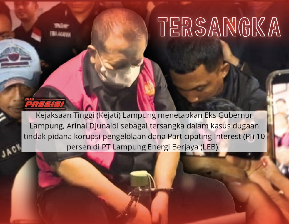InfoPresisi, Bandar Lampung – Kejaksaan Tinggi (Kejati) Lampung menetapkan Eks Gubernur Lampung, Arinal Djunaidi sebagai tersangka dalam kasus dugaan tindak pidana korupsi pengelolaan dana Participating Interest (PI) 10 persen di PT Lampung Energi Berjaya (LEB). ​