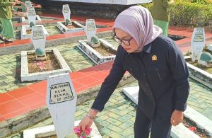 Momen Ketua DPRD Kota Metro saat tabur bunga di salah satu makam pahlawan.